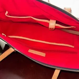 • Tan leather handles and trim