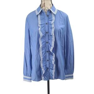 Boden Chambray Ruffled long sleeve blouse blue Sz 6 Preppy Cottagecore Coquette