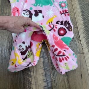 Patagonia pink fleece full body jacket or coat or bunting for baby girl size 6 months. Dual zipper chest. Fold over cuffs or mittens. Dual zipper on inner thigh for easy diaper change. Excellent condition.