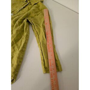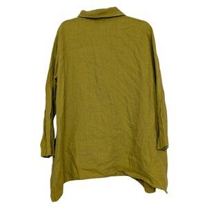 Christopher Calvin Womens 100% Linen Chartreuse Yellow Lagenlook Oversized Tunic Shirt Size Small