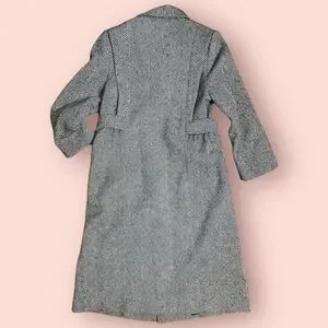 Vintage Alorna- Made in USA- Black and White Herringbone Double Breasted Coat