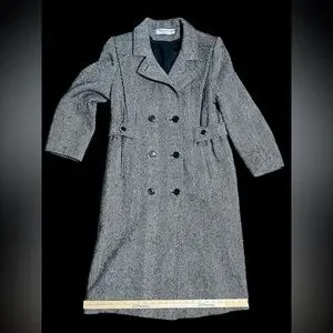 Chic and vintage Alorna herringbone coat. Features a classic double-breasted style. The lining is in great condition. The coat is solid and warm. Dry clean only.