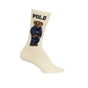 POLO RALPH LAUREN Women's Black Cowboy Boot and Americana Bear Crew Socks 9-11