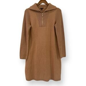 Talbots Zip Collar Sweater Dress Tweed Tan Womens Petite Small SP Cotton