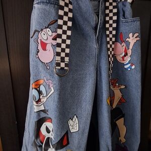 Fun and unique women's flare jeans. Cartoon network jeans. Brand new without tags. Comes with belt. size 17 never worn