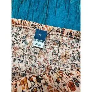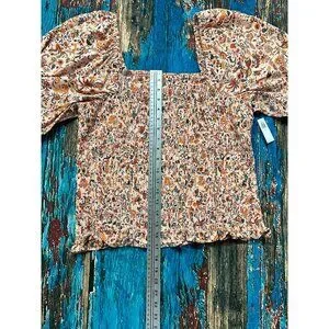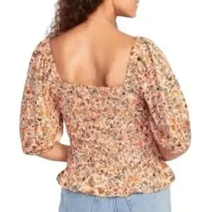 Shirts/NWT Old Navy Peach Floral Smocked Puff Sleeve Peplum Square Neckline XL
