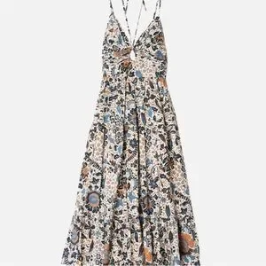 The Phoebe Dress from Ulla Johnson is made from their signature cotton poplin in a graphic floral motif that is perfect for the warm weater. Featuring an architectural fitted top with a ruched bodice, keyhole opening and signature double strap neckline, this gorgeous midi-length dress has a double-tiered skirt and is finished with a cascading ruffle hem.