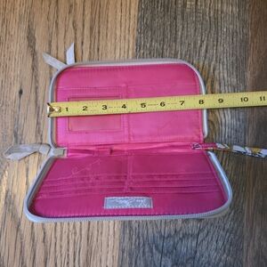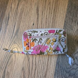 Vera Bradley matching purse & wallet in Tea Garden print. Tea Garden" is a floral pattern with vibrant colors, including pink, orange, and gray/white florals on a light background.