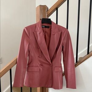 Zara faux leather rose marsala blazer. Double-breasted. Fully lined. Flat flap pockets -tuck them in for a different look. Back vent. Ideal for a polished look. New without tags. Excellent pre-owned, never worn condition.