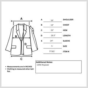 The blazer measures 17 inches armpit to armpit. I hope this helps. If you need additional measurements please let me know.
