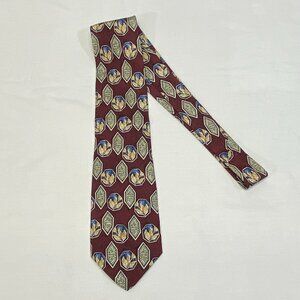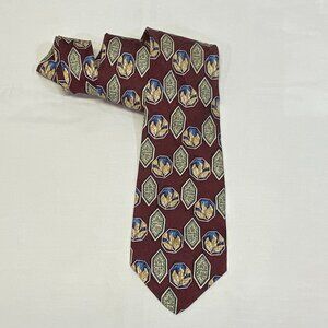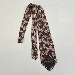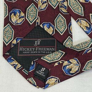Hickey-Freeman Hand Sewn USA Silk Wide Neck Tie Maroon Framed Shapes