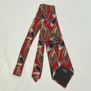 Ferrell Reed for Nordstrom Hand Sewn USA Wide Silk Neck Tie Red Grey Leaves