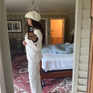 dolce Gabbana vintage white pants suit corduroy with matching hat. If you Google this outfit, Jennifer Lopez wore this many times.