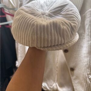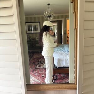 Dolce Gabbana white corduroy vintage pantsuit with matching hat.