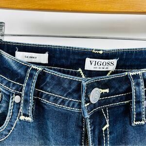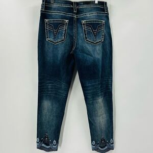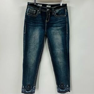 Vigoss Blue Washed Heritage Mid Rise Embroidered Hem Skinny Jeans 12 Maurice’s