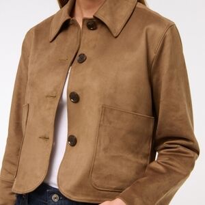 Trending suede fall jacket. Size and color combo sold out online. Only worn once!