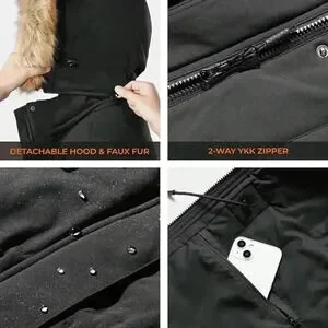 LONG-LASTING & ADJUSTABLE HEAT: This parka is designed to get you through extreme and challenging environments. The 7.38V UL certified battery guarantees up to 10 hours of 3-level heat supply.