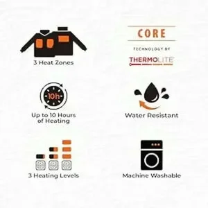 EASY CARE: Durable fabric and carbon fiber heating elements are completely safe for machine washing The heating elements and jacket construction are designed to endure 50+ machine wash cycles.