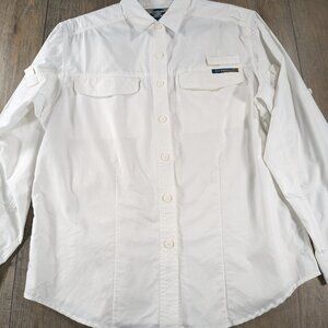 Ex Officio Top Adventure Travel Womens Medium White Button Front Long Sleeve