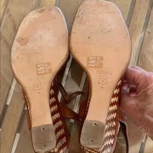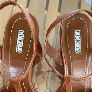 Chic brown leather sandals by Nickels. Ideal for casual outings. Comfortable and stylish.
