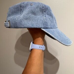 Casual blue denim cap featuring 'God Is Dope' logo. Ideal for everyday wear. One size, adjustable.