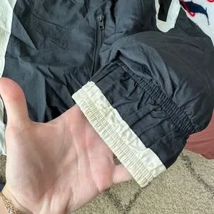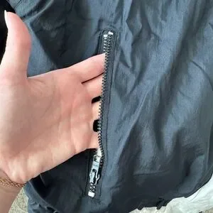 - bought used with some flaws: staining on sleeves & near zipper (pictured), missing zipper