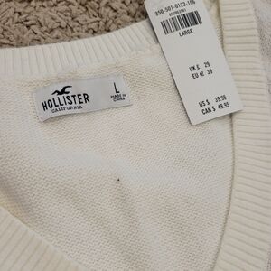 Hollister V-Neck Sweater Vest - Cream, Brown, Blue
