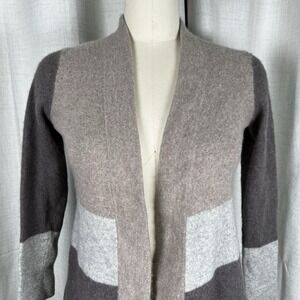 Charter Club Luxury 100% Cashmere Medium Sweater Cardigan Colorblock Grey Brown