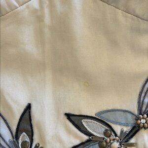 Luxurious cream and black dress by Rebecca Taylor. Size 2. Zip back, adjustable straps, cotton. Small snag at center chest. Small stain in front . See photos. Perfect for elegant or casual wear. Lightweight. 13” across flat waist.