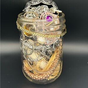 Mixed Jewelry Jar with Gold and Silver Tones