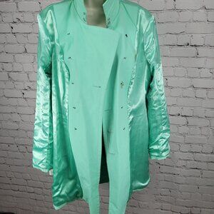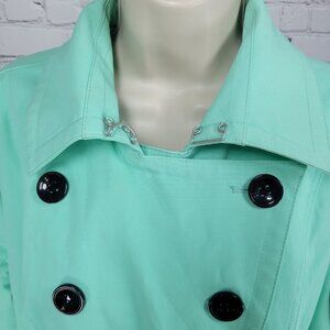 New York & Company Green Belted Double Breasted Trench Pea Coat Jacket Large L