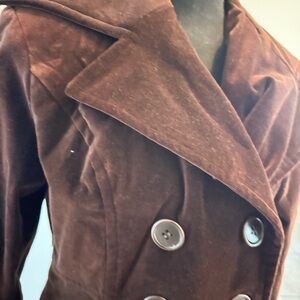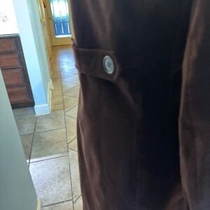 Chic double-breasted trench coat. Features a rich brown hue. Ideal for versatile styling.