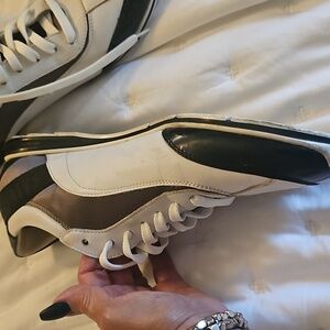 Elevate your style with these sleek white and black men's sneakers. Perfect for any casual outing. sz 12..good condition, Salvatore Ferragamo