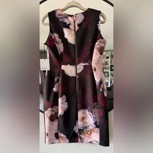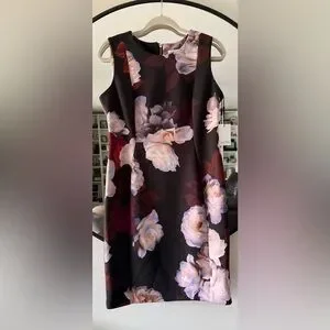 Calvin Klein Black and Pink Floral Zipper Dress Size 12P