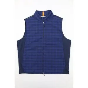 Peter Millar Vest Mens Navy Blue Fuse Elite Flannel Hybrid Performance XXL Plaid