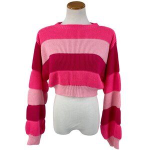 Barbiecore Cropped Hot Pink Ribbed Knit Sweater