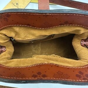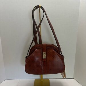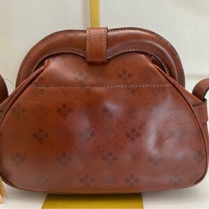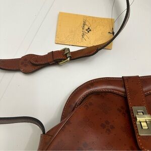 Patricia Nash Florentina Crossbody – Tan Leather Frame Bag with Signature Print
