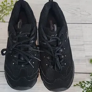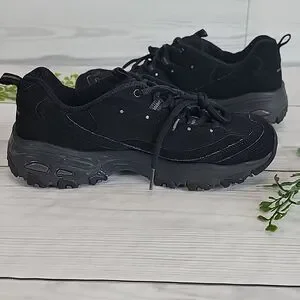 Skechers D'Lites Play On Shoe black leather Women's Size 8