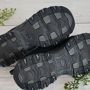 Classic comfort and style with these walking sneakers by Skechers with a sporty leather upper, air-cooled memory foam insole, and a grippy rubber traction outsole. Great pre-owned condition with normal signs of use.