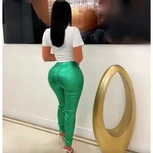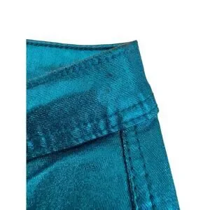 Tapered high-rise jeans coated in metallic blue with a disco-ready sheen. These JC JQ pants hug the leg with stretch denim and feature back pockets plus a subtle faded spot. Never worn.