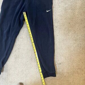 Nike blue jogger sweatpants in men’s size XL. Pants have two front pockets, one back pocket and inner drawstring. Tapered leg. Light fading, in good condition.