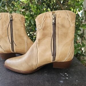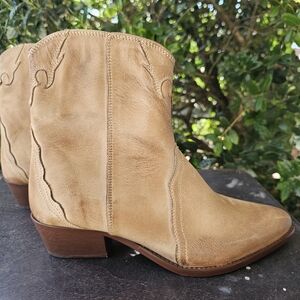 Womens Size 10 Free People Tan Leather Ankle Cowboy Boots Western