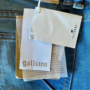 Sexy! Galliano faded and distressed straight leg jeans—new, never worn. Crystal cherries on the back pocket, enamel cherry button at waist. Classic five pocket design, zip fly. Long length—inseam measures about 35”. Rise is low, about 8” (sadly, too low for this gramma, which is the ONLY reason I’m rePoshing them!). Contemporary designer size 30, these are SLIM cut.