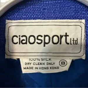 CiaoSport Ltd Vintage Silk Blue Jacket Polka Dot Pocket Handkerchief Accent Sz 8