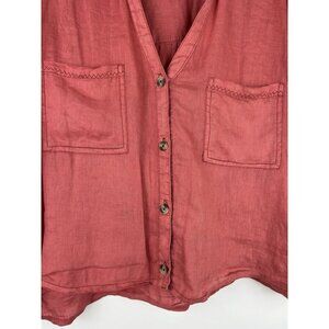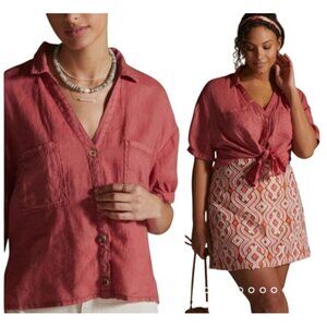 PILCRO Anthropologie Size M 100% Linen Surf Button Down Short Sleeve Shirt Pink