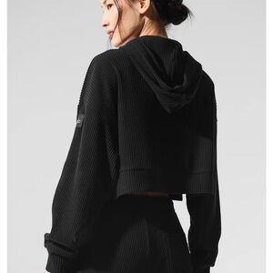 Alo Yoga Muse Hoodie in Black. Soft ribbed knit fabric. Worn a few times. Size medium. Also have matching sweatpants.