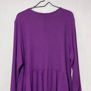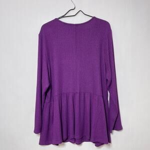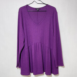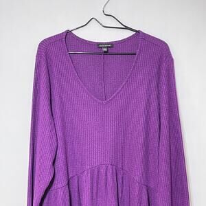 Lane Bryant Top Womens 22/24 Purple Waffle Knit Long Empire Waist Stretch Shirt