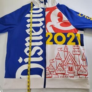 7558 * Disneyland Resort 2021 Full Zip Hoodie Blue White Red Size XL