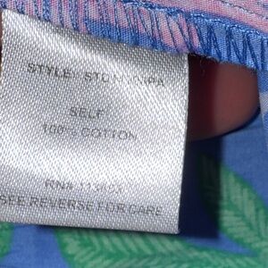 Charming blue dress with vibrant floral patterns. Features pink and yellow flowers.
