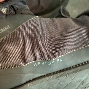 Arc'teryx Men's Aerios FL Mid GTX in Black/Black - Size 12 Condition: Good Used Condition. Waterproofing, heels and toes are good. Wear to interior eyelets on both sides (see last photo) Description: The mind of a trail runner meets the body of a hiking shoe, the Aerios FL 2 Mid is designed for rapid travel in remote and varied conditions. The highly durable fabric upper offers a snug and secure fit, like a running shoe, and the TPU overlay and toecap protects the high-wear areas. An integrated TPU shank keeps your feet stable and supported in uneven terrain. Recycled polyester mesh upper is durable and breathable Waterproof-breathable GORE-TEX® membrane shelter feet from the elements Durable TPU film overlay and TPU toecap resist abrasion and protect feet from trail bumps Compressed EVA midsole cushions underfoot and an integrated TPU shank adds stability on technical trails Vibram® MegaGrip™ rubber outsole provides confident footing in varied terrain